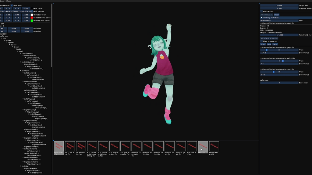 • Information about data in animation and skeleton (Ex. Bone count, Original FPS, Animation length)